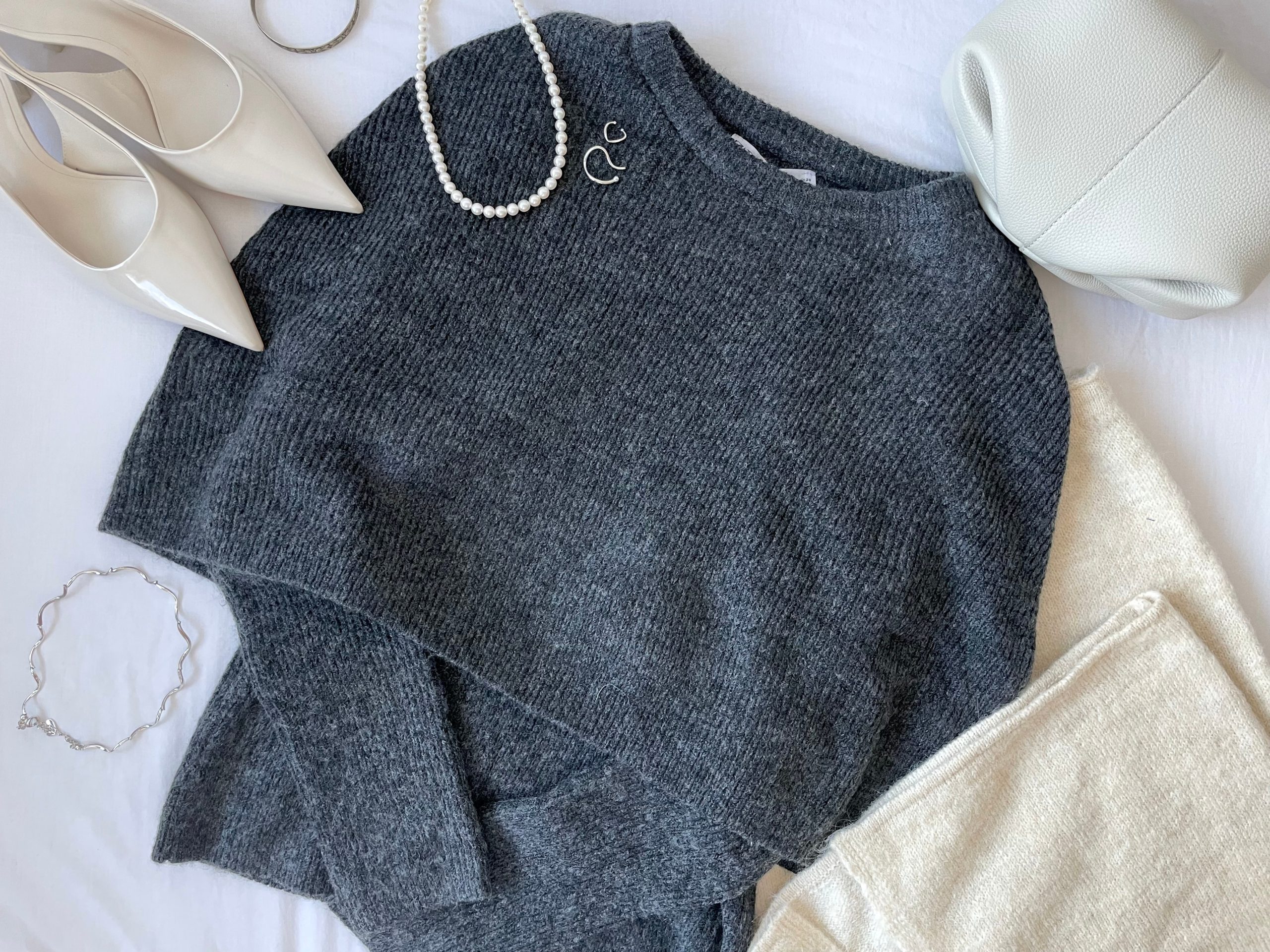 冠婚葬祭のイメージも強いパールネックレスですが、ニットやスウェットに合わせることで、洗練された冬コーデを作ることができます。