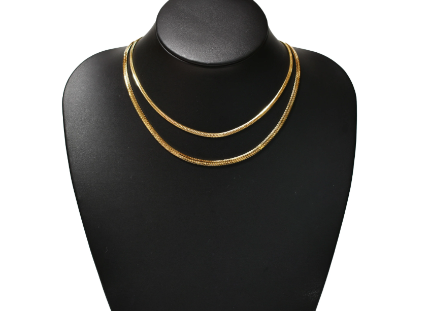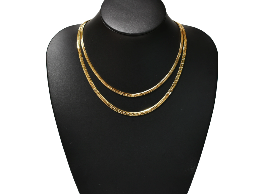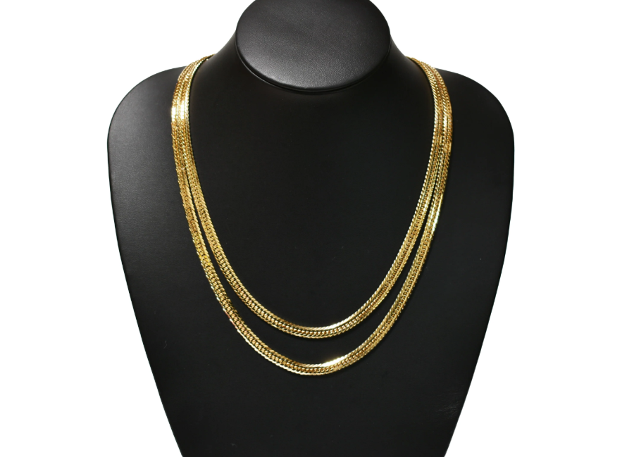 喜平ネックレスは単体でも十分に輝いて見えますが、2本・3本と重ね付けすることで、さらに存在感を発揮できます。