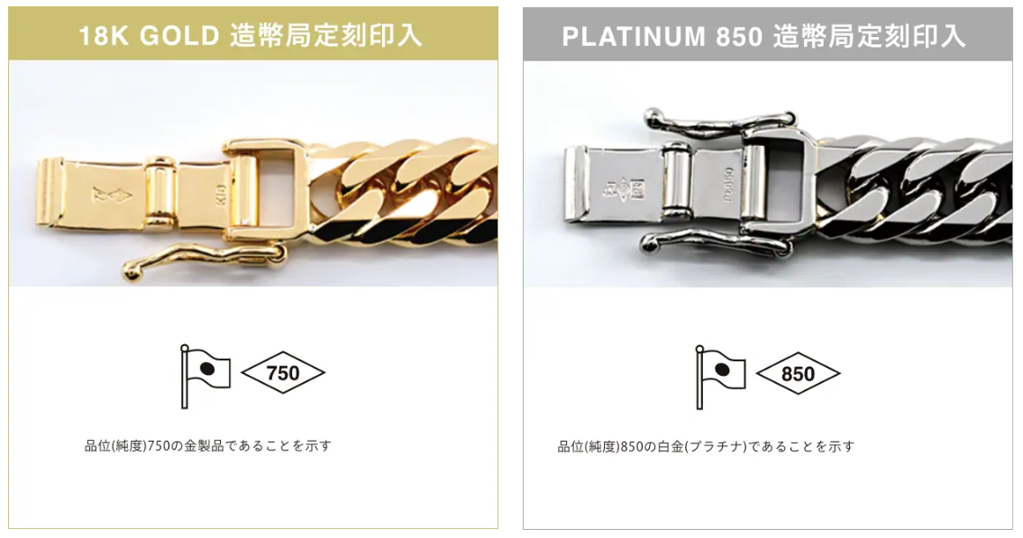造幣局定刻印とは、ジュエリーが「本物の金・プラチナ製である」という証明になる刻印です。