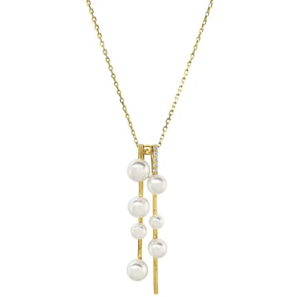 パールの柔らかな照りがデコルテの上で映えることで、華やかながら落ち着いた印象を与えます。