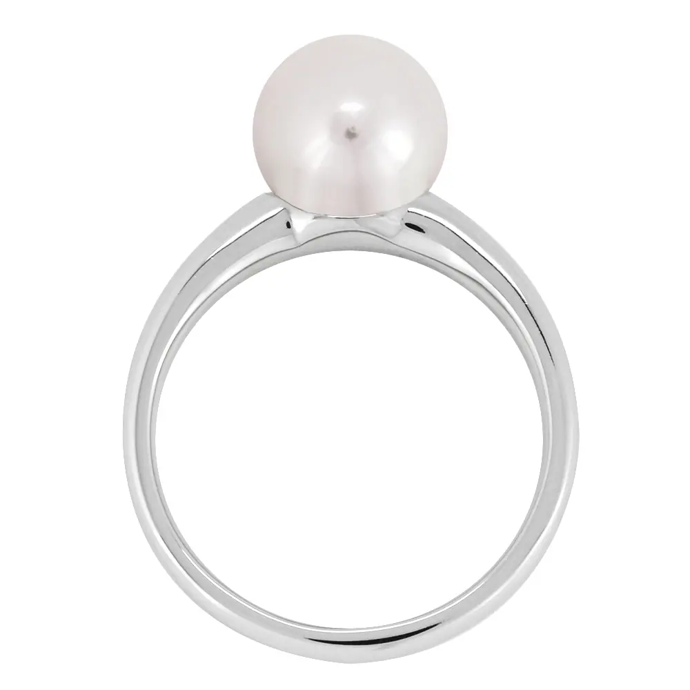 約9mmの大粒パールを一粒あしらった、シンプルながら存在感たっぷりの華やかなリング。
