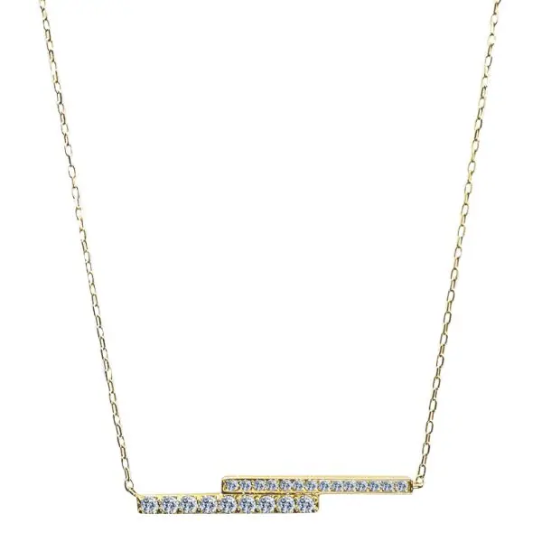 総カラット数約0.3カラット、数にして23石ものメレダイヤが並んだモダンなラインデザインのネックレス。