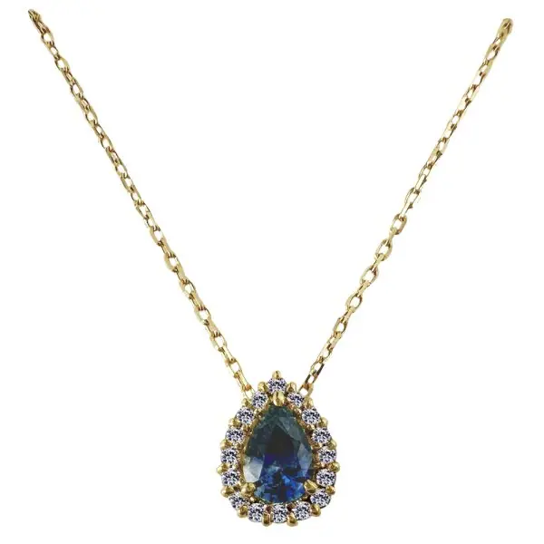 ペアシェイプ(しずく型)にカットされた9月の誕生石・サファイアが存在感たっぷりのペンダント。