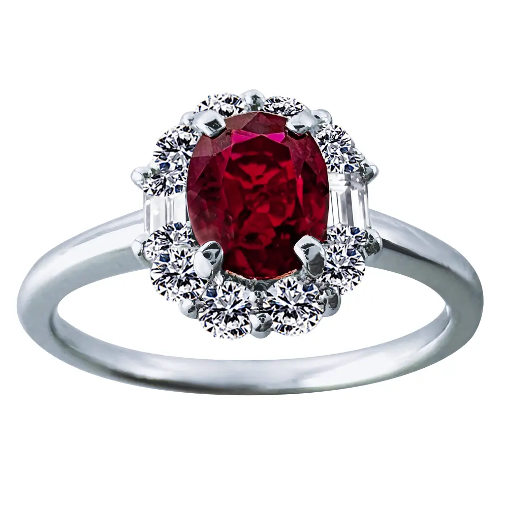 7月の誕生石・ルビーの深い赤色とメレダイヤの輝きがクリスマスにぴったりなプラチナリング。