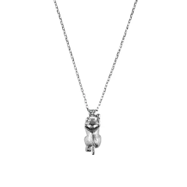 子猫が遊ぶ姿をホワイトゴールドで表現したかわいいペンダント。