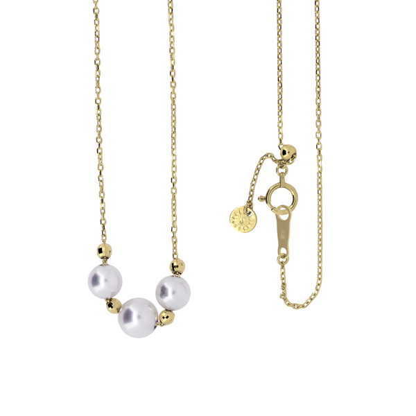 U字のライン上にパールとゴールドのカットボールが交互に並んだネックレス