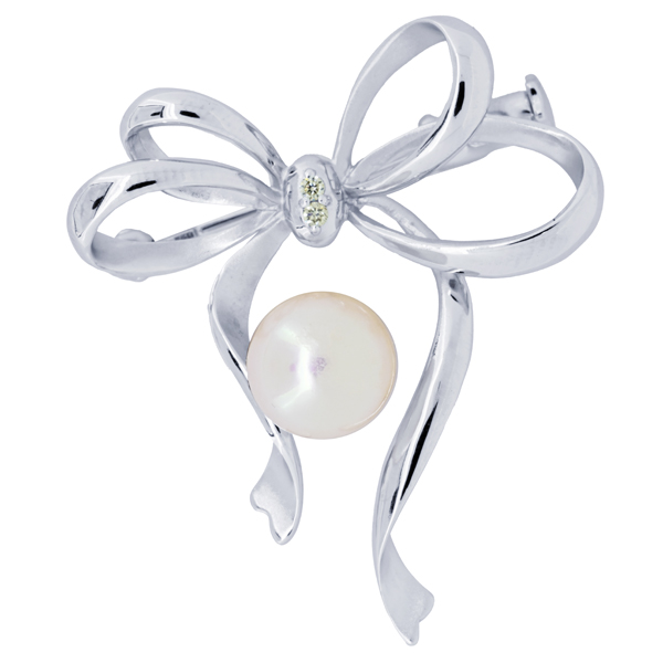 リボンモチーフが愛らしいパールブローチです。