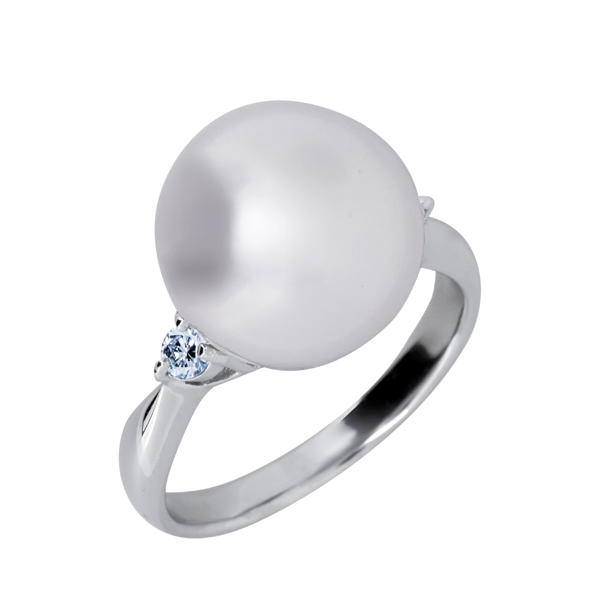 南洋パールにダイヤモンドをあしらったシンプルリング